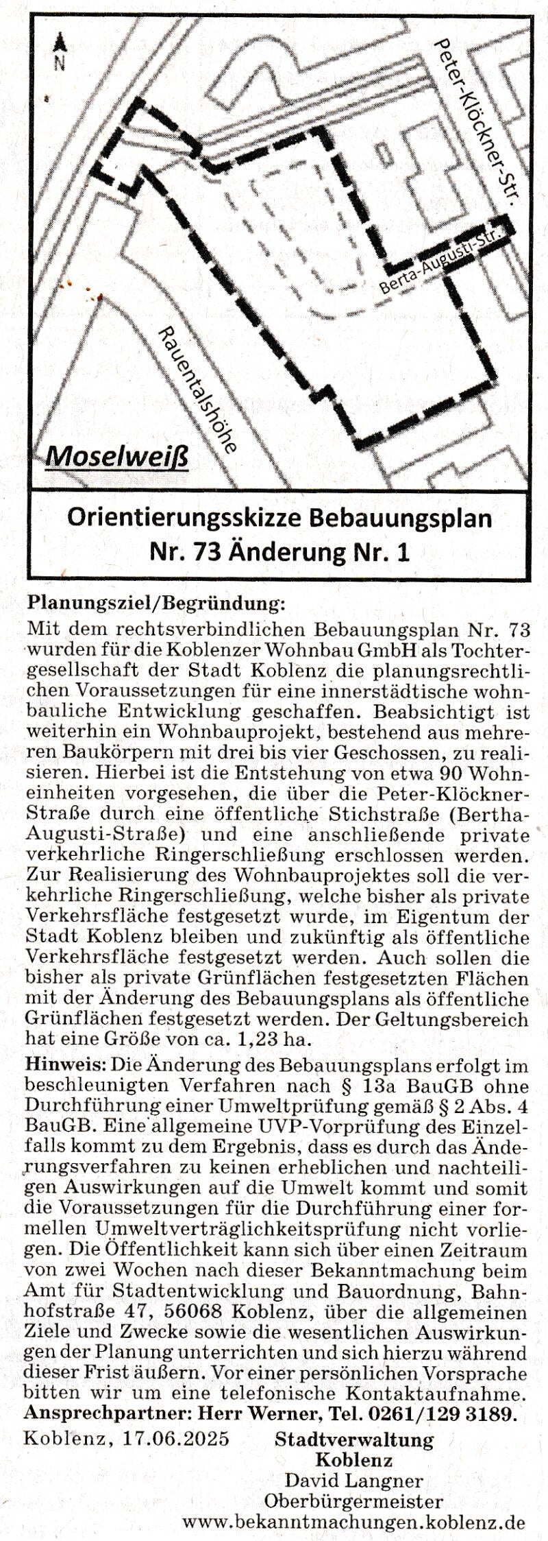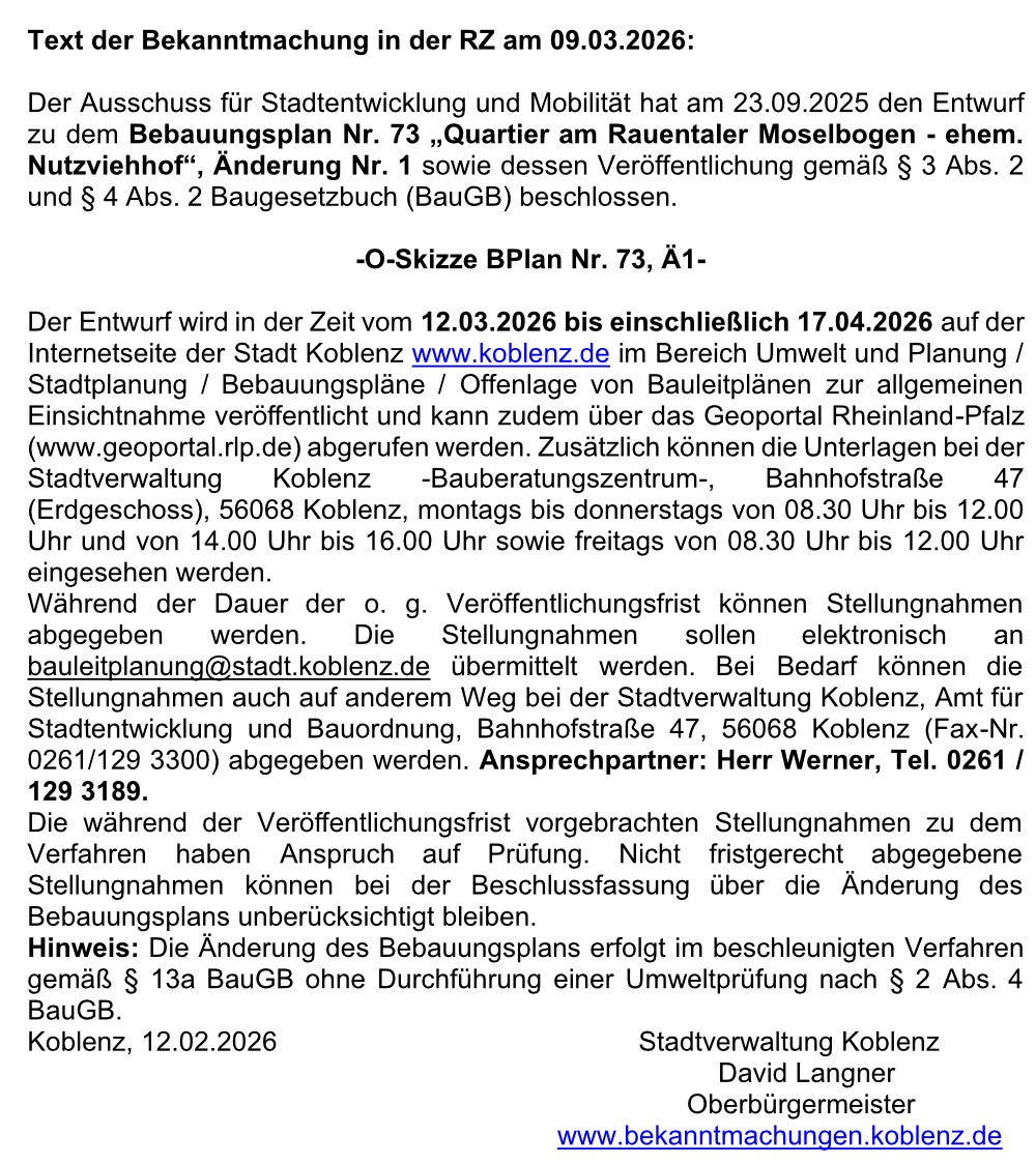 Der Artikel in der heutigen Ausgabe der Rheinzeitung beschreibt die aktuelle Situation und den vorgesehenen zeitlichen Ablauf zur Realisierung von 90 Wohnungen im Wohngebiet Moselbogen.